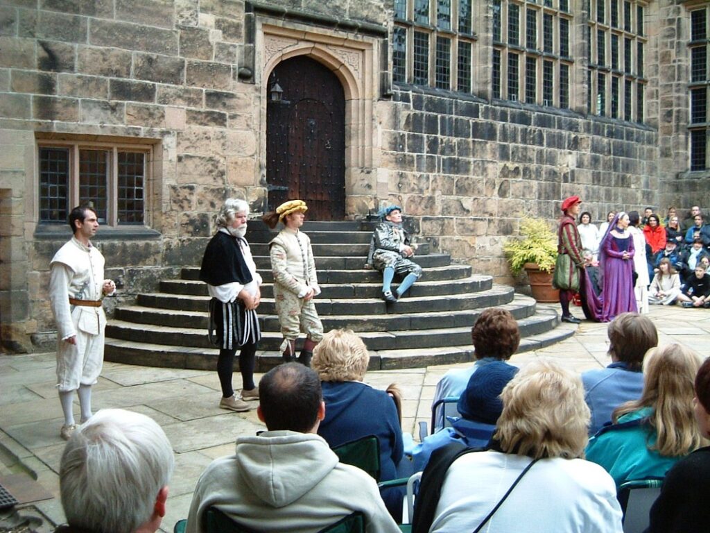 The house has a connection with Shakespeare (there is an oral tradition that he lived at the Tower for a couple of years in his mid teens) and soon after I started working there, the BBC ran a four-week documentary on Shakespeare, presented by the historian Michael Wood. Hoghton Tower received good publicity in this documentary, and on the strength of this, the Tower decided to put on a Shakespeare season for 2½ weeks in summer 2003. The play was performed in the grounds by a professional theatre company and was very well received. I was in demand as a steward on any afternoon or evening that I could manage. Laurence also helped the visiting public, offering to carry items such as picnic hampers or garden chairs from the car park. He was delighted to earn himself a few pounds through this piece of commerce. A similar event was organised the following year, but that was the last one. The performances were stopped, I think, because of spiralling costs and falling returns.