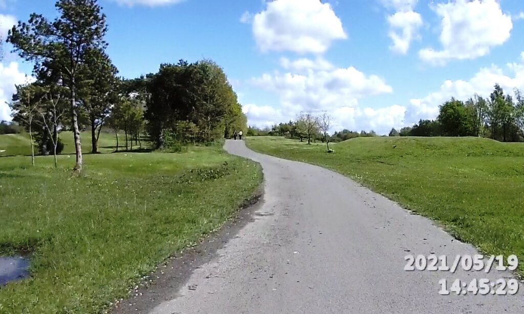 What a wonderful route it turned out to be! It took advantage mainly of disused railway tracks, canals or riverside trails, all of which were properly surfaced. The only downside was that it took me through the centre of the current Covid-19 hotspot (Bolton), but now I’m fully Astra-Zeneca’d I was feeling more confident than for some time. I also managed to peep over the fence at the new RHS Bridgewater garden in Worsley. I’d’ve had a better view, but they were tarmaccing the North side towpath of the Bridgewater canal so I couldn’t see much. The route also passed by several famous urban sites previously only seen by car.