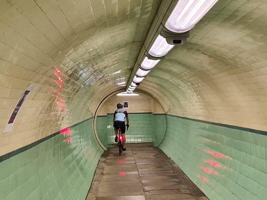 An anticipated highlight of the trip was to be a ride through the Tyne cycle tunnel, and so it proved to be.  I descended to the tunnel by lift and had to wear a mask, and spectacle-wearers will understand how I accidentally pressed the emergency call button on the lift going back up.  I only intended to hold the doors open for a fellow cyclist, but my glasses were so misted up that I pressed the wrong button in error.  I spent the duration of the upward journey explaining to security that the only issue was that I couldn’t see the buttons properly!   He never saw the funny side.
