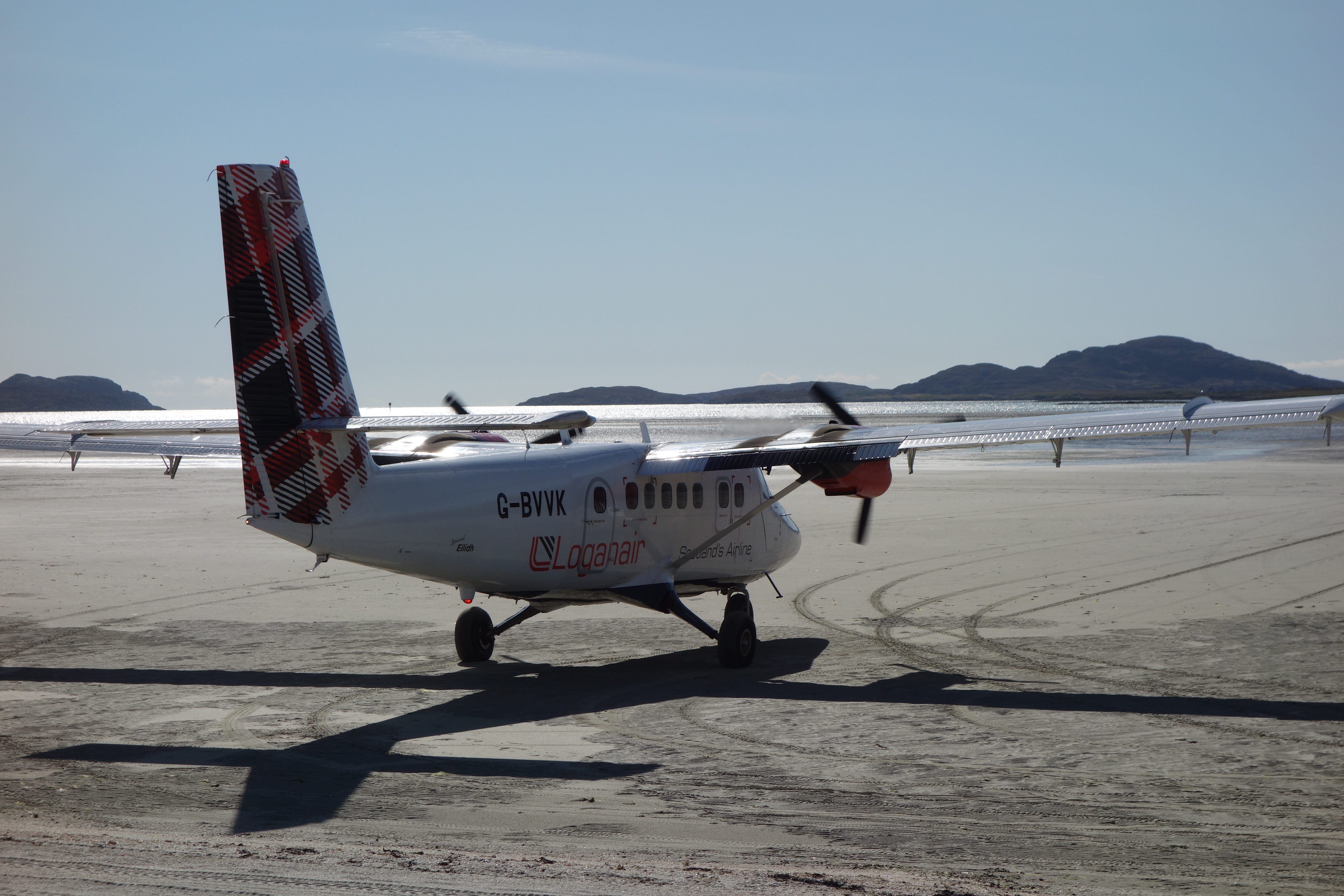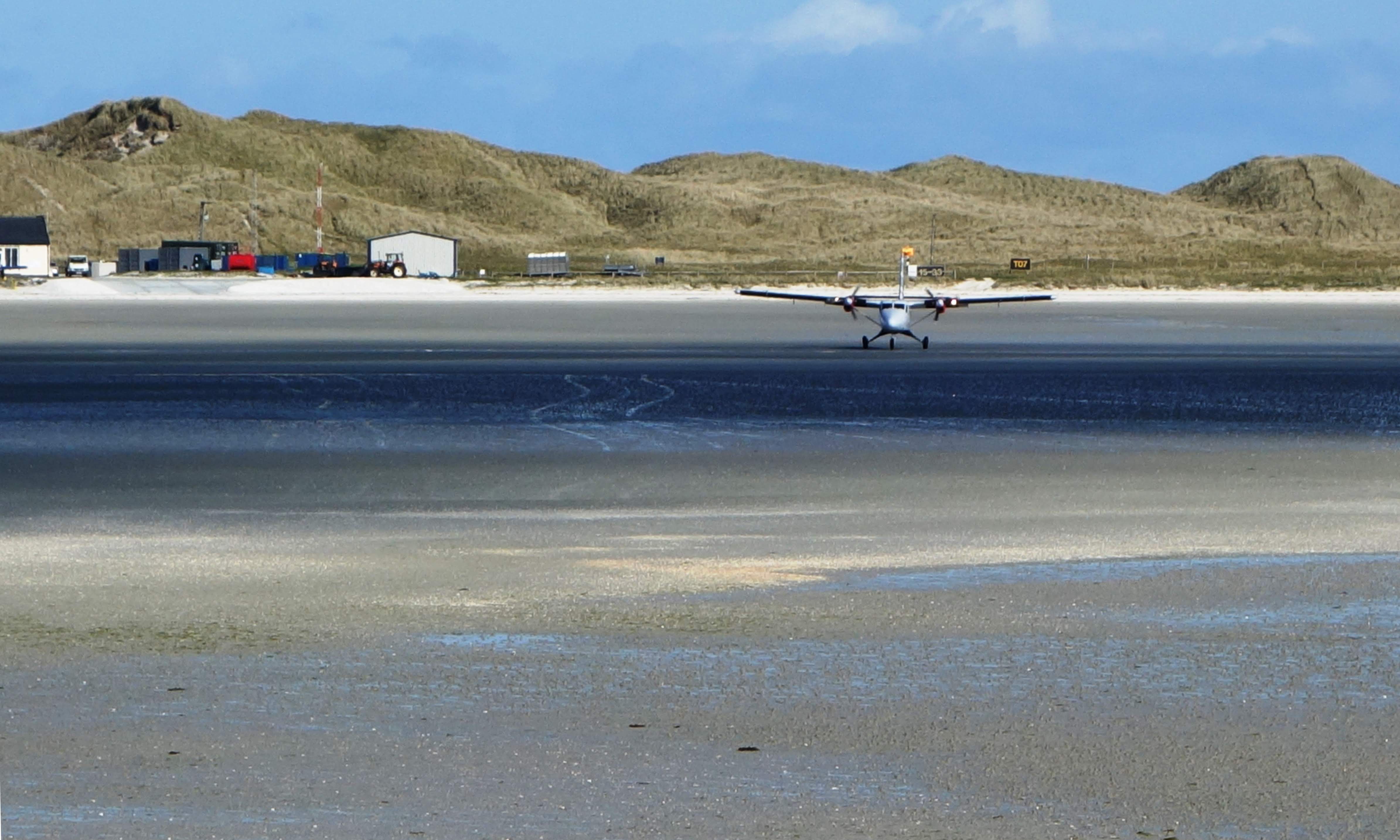 We were treated to a gorgeous sunny morning, so after a swift breakfast, we quickly got on the road to see three more islands: Eriskay, South Uist and Benbecula. We set off northwest to find yet more beautiful white sand beaches before heading towards Barra airport which sounds much grander than it is. In essence, it’s just a small terminal building, a windsock and a beach. We were lucky to see a Loganair flight from Glasgow land and later take off, but whilst we took care to avoid the blast from the engines on take off (the aircraft was just 10m away when it began its run) we had parked the bikes earlier and never considered them in the excitement. Consequently, they got sandblasted and I spent the next five minutes brushing the sand from my freshly oiled chain and cassette using grass. Oh well, I’ll know for next time.