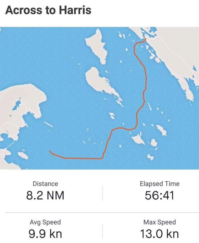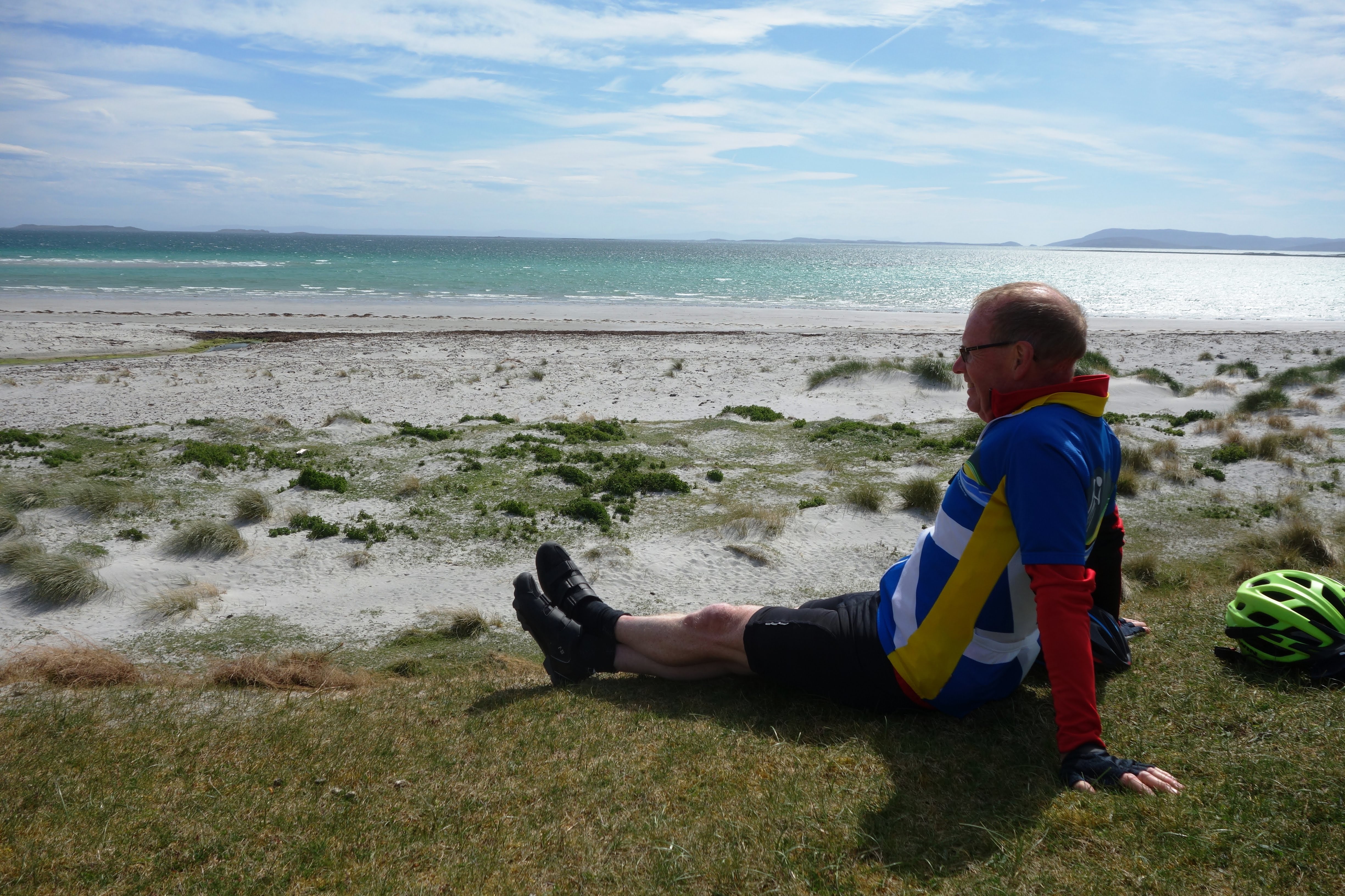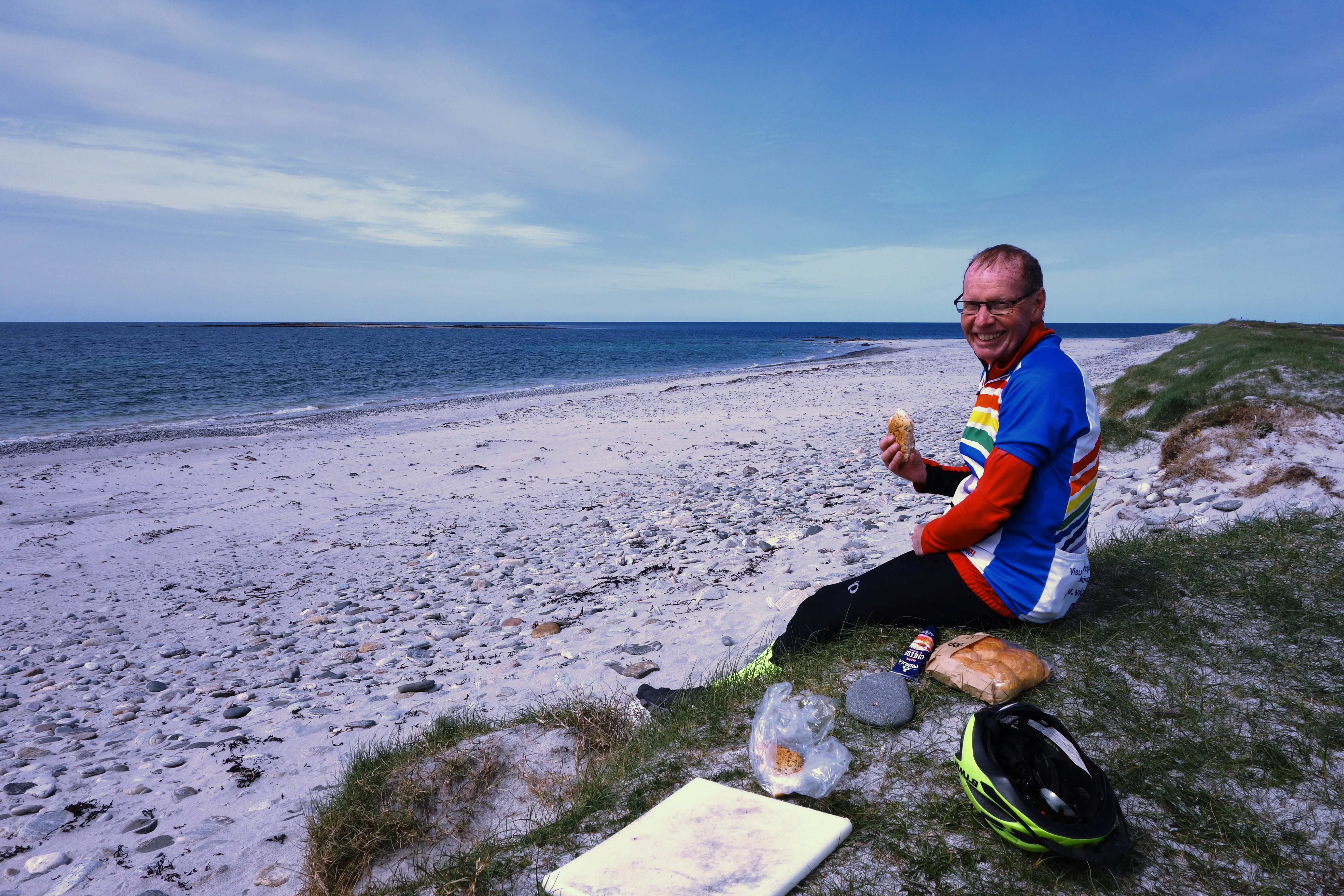 The route today was quite flat, but tomorrow we’re prepared for more hilly terrain on North Harris and Lewis. With the continuing tailwind, I doubt we’ll even notice them.