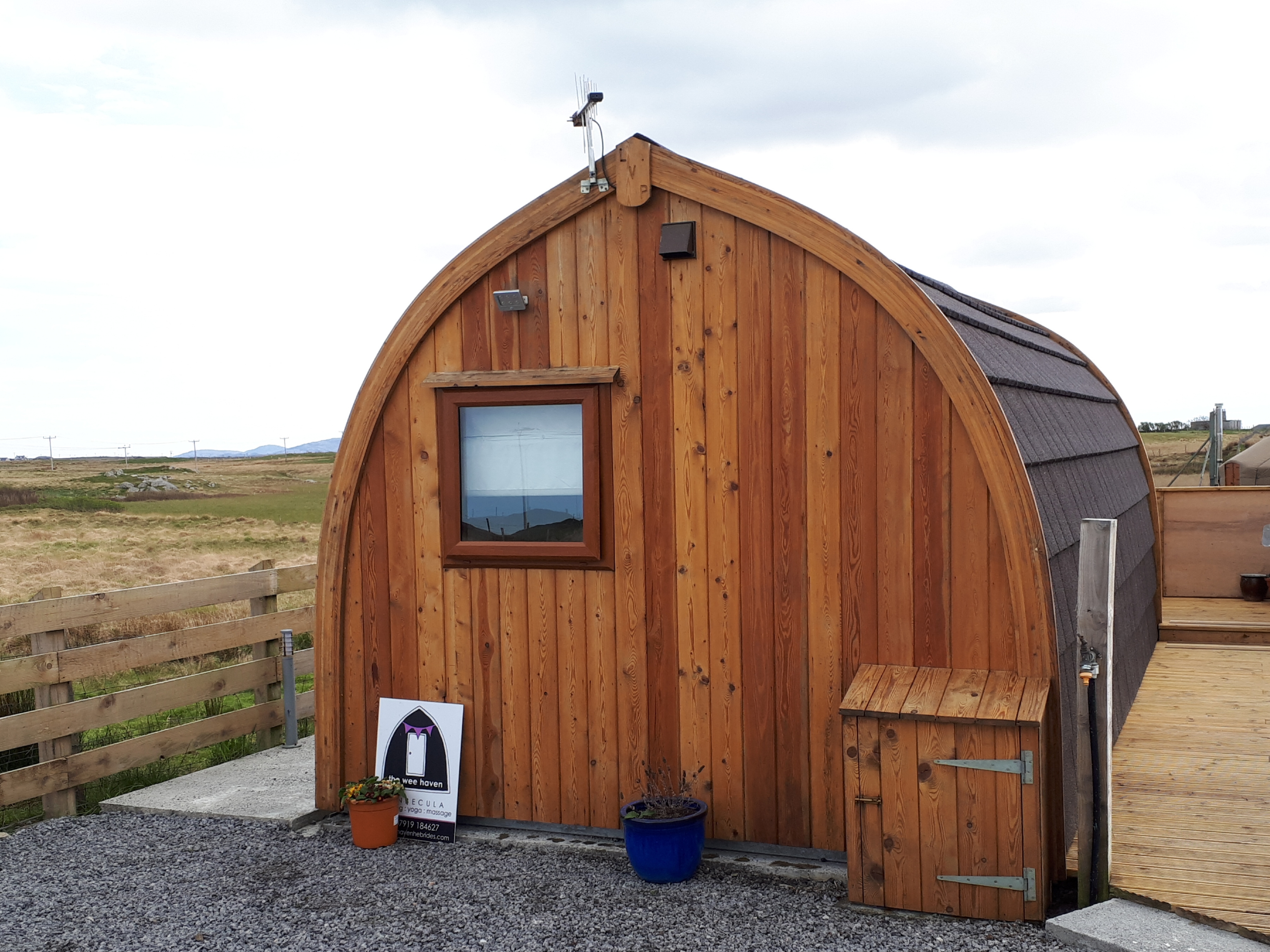Benbecula was our final destination and a cute glamping pod, our gaff for the night. After a brew and rest, we went for a ride (without luggage) to Peter’s Port, a posh name for a slipway, a load of lobster nets and a collection of pieces of scrap including an old Spanish truck and the tanks from two road fuel tankers.