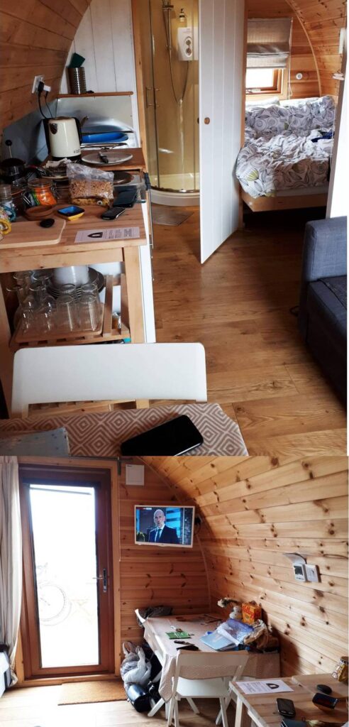 The pod is great, with everything we might need including more food supplies than we can carry on our bikes.