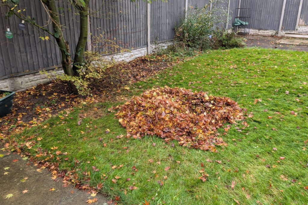 It was raining all morning so I didn’t go out, but by lunchtime there was a dry spell so I mowed the grass and raked out all the accumulated moss. Like the loaves & fishes, I managed to fill five bin liners of spoil but the lawn looked just the same!