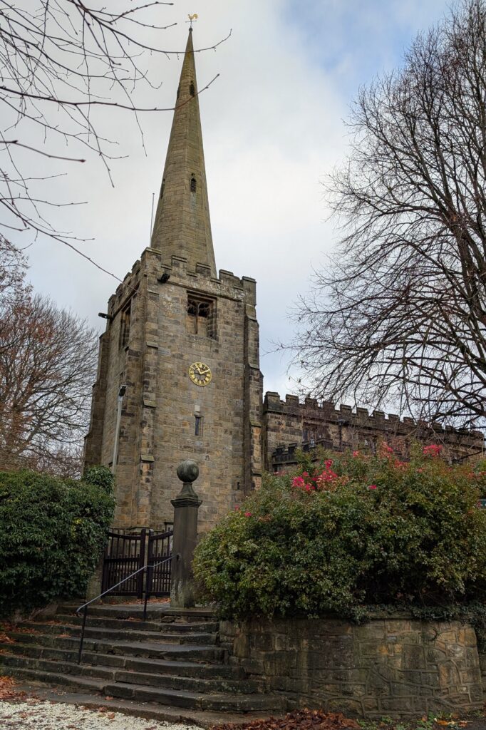 I soon left the busier roads and began climbing up onto the moors. One road I chose was narrow and thankfully traffic-free, but its surface was strewn with debris. I had to carefully pick my way uphill through leaves, gravel, bits of tree and what appeared to be a mountain stream. Once on the tops, it was beautiful and I had a tailwind to boost me down to Kelstedge and Ashover.