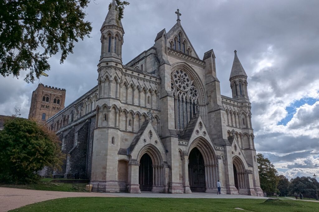 St Albans is an impressive city. I don’t know what I expected, but I think I was anticipating another version of Hertford. I was wrong. Although it’s only small (80-odd thousand population), it has grandeur. And I’ve not seen anything more grand than its cathedral which is huge, and unlike many cathedrals, not covered in scaffolding. Although it was started in the 11th century, it looks much newer.
