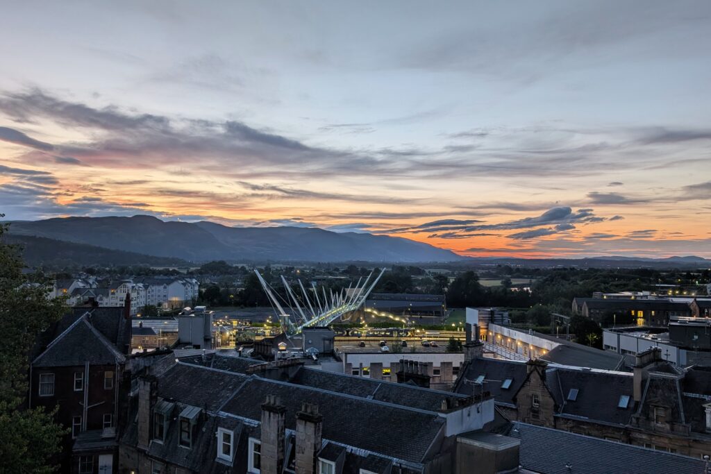 We’d been warned by the hotel that limited parking was accessed from the rear of the premises and was offered on a first come basis so we were incentivised to arrive early.  We just managed to squeeze in to secure the last place.  After checking into our room on the 5th floor, we had a brew and headed into town for the first of many surprises and disappointments on this trip.  When I booked the hotel (which was an impressive building right in the centre of the city), I walked out of the front door to realise that we weren’t in the hotel I thought we were in.  I knew this since I could see the one I thought I’d booked which was 100 yards up the street!  Never mind, the hotel we are in looks fine, but the restaurant menu was closer to that of a pub, so as compensation, we booked a meal at the Stirling Highland Hotel where I thought we were staying.