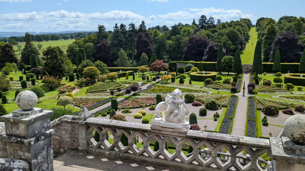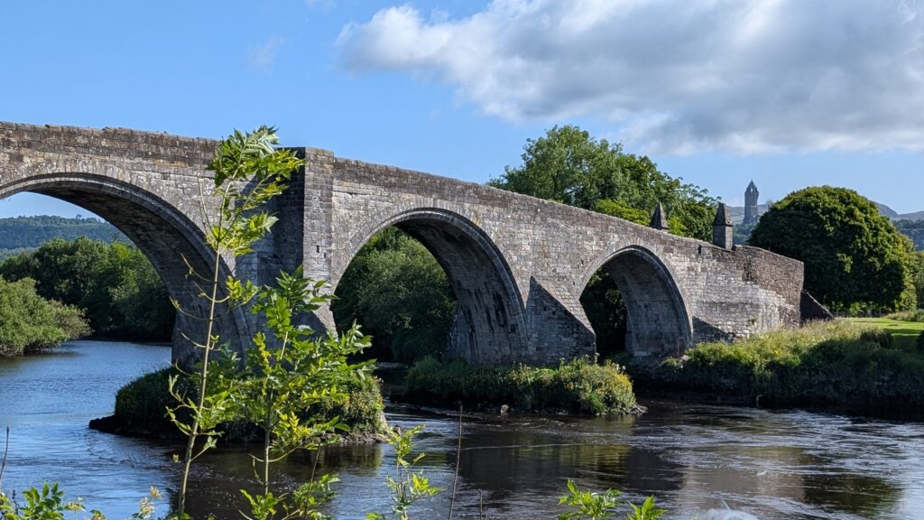 Drummond Castle Gardens (our destination today) didn’t open until 11am so after breakfast we walked out to the Old Bridge in Stirling and back via Primark to buy an emergency hairbrush.