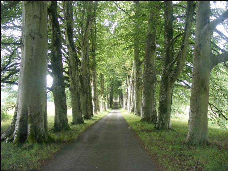 At 10:30 we left for the castle and 40 minutes later as we turned off the road we were stunned by the fabulous driveway – an entire mile of straight single-track road through an avenue of mature beech trees.