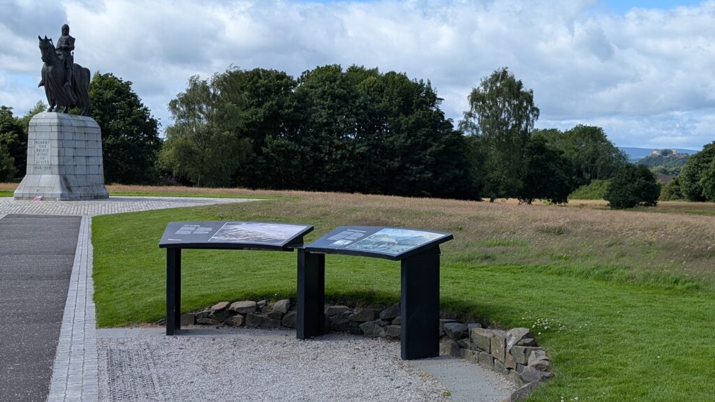 We’d passed Bannockburn battle site on the way into Stirling yesterday, so we decided to visit it today before returning to the hotel.  There was a huge visitor centre there, but we opted out of the tour since it was getting late and instead just admired the monument and huge statue of Robert the Bruce.