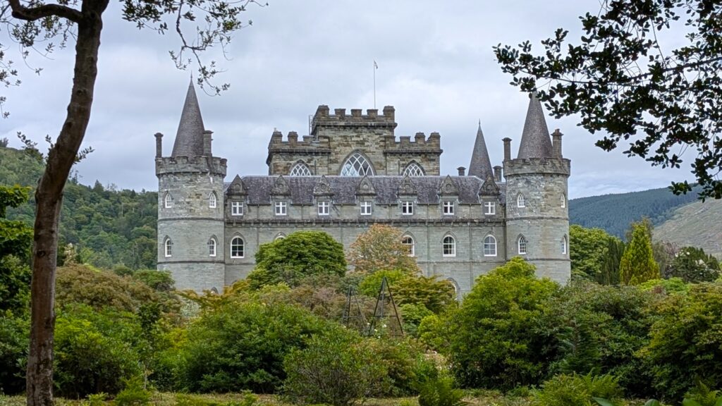 We took a short drive to the Wallace Monument after checking out and spent a wonderful morning walking up to the monument itself and then climbed the 246 steps to the Crown Spire where we enjoyed fabulous 360º views.   After a coffee and a scone, we set off at 11am to drive the 80 miles to Inveraray via Crianlarich.