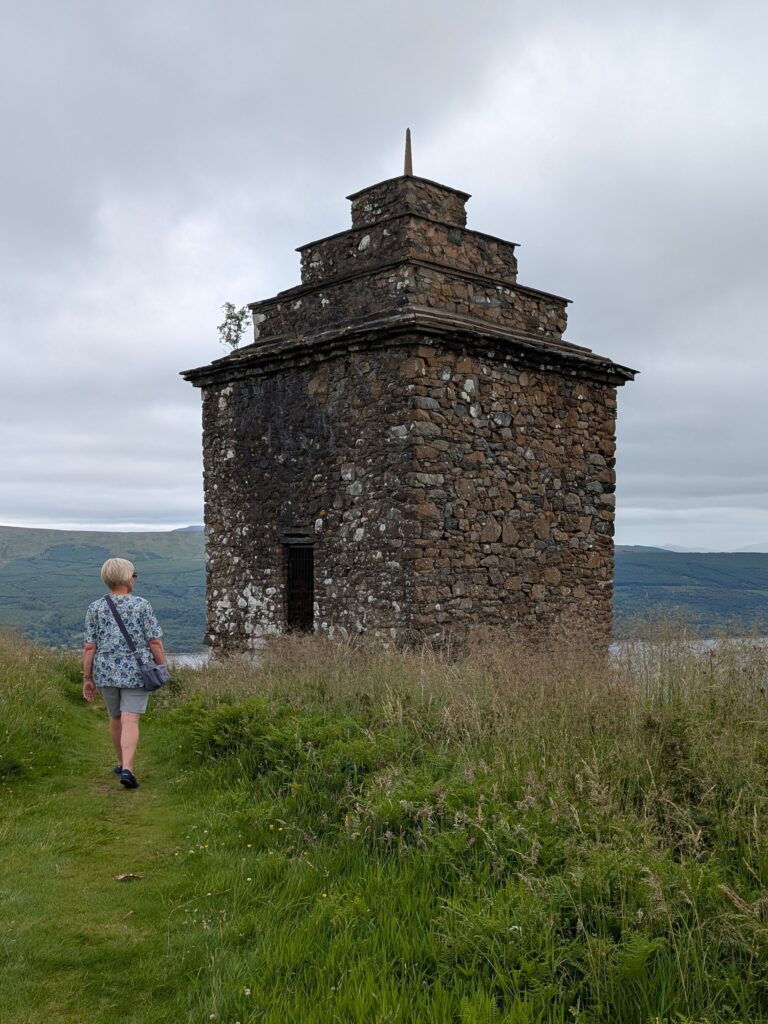 Gee arriving at the watch tower (Dùn na Cuaiche) above Inveraray