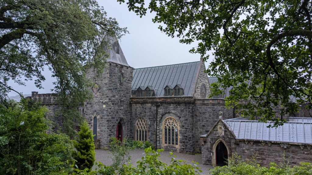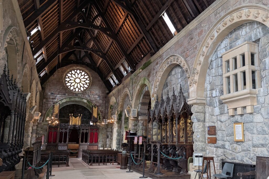 On the way back, we called in to see St Conan’s Kirk which whose odd architecture was fascinating.  Every architectural style you could conceive appeared to be represented in the building which exuded a sense of fun and joy.  There was much to see and puzzle over, the most perplexing being a set of organ pipes which appeared to be unconnected to any air supply: they just appeared to be suspected from a rope.  Perhaps they were simply ornamental, but there was a console so some of the pipes must have been real.