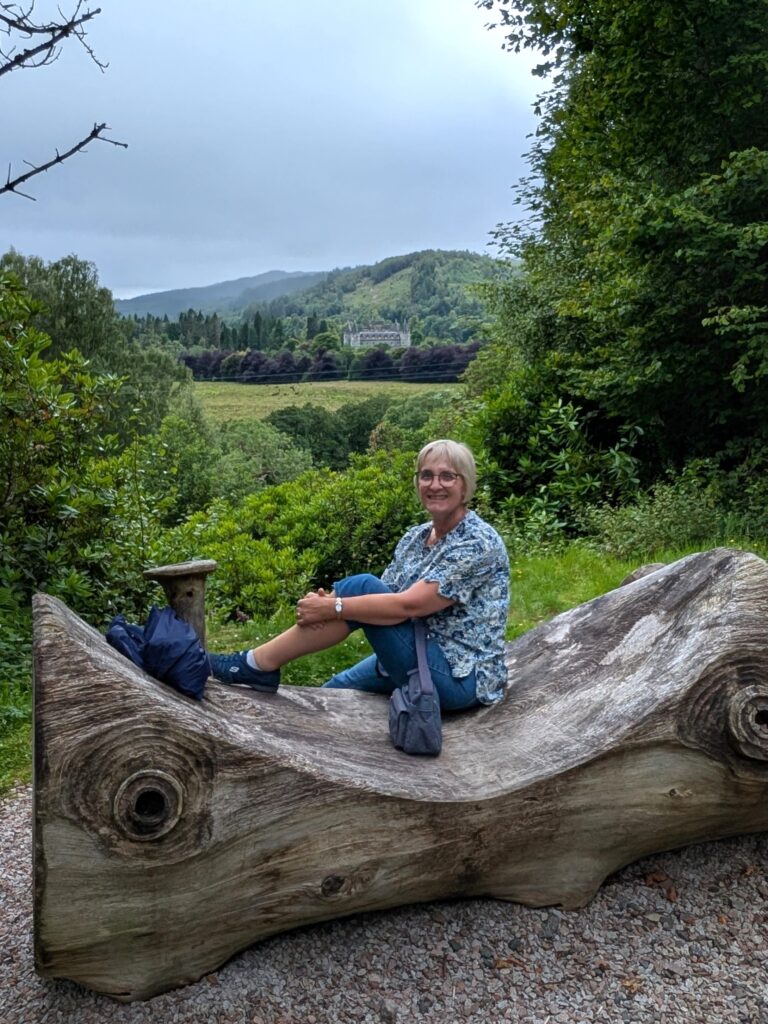 After enjoying an ice cream on the front, we walked through the castle grounds and then climbed up to the lookout tower (Dùn Na Cuaiche) where there were fabulous views down the loch.  Just as we were beginning to descend, it began to drizzle, but we didn’t get too wet walking through the pine forest.  The rain was forecast to arrive at 5pm, so it was about right.
