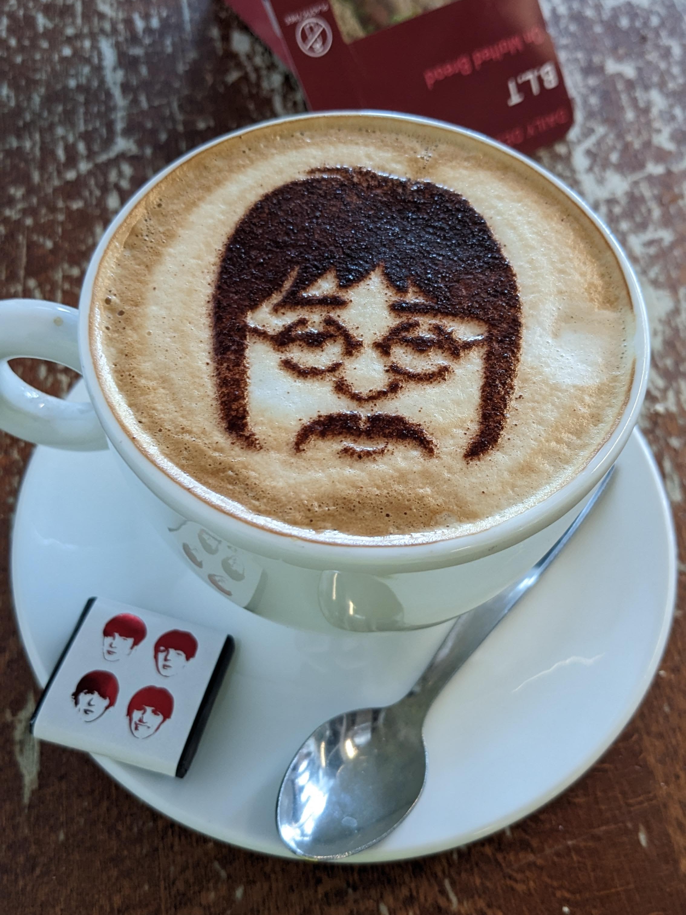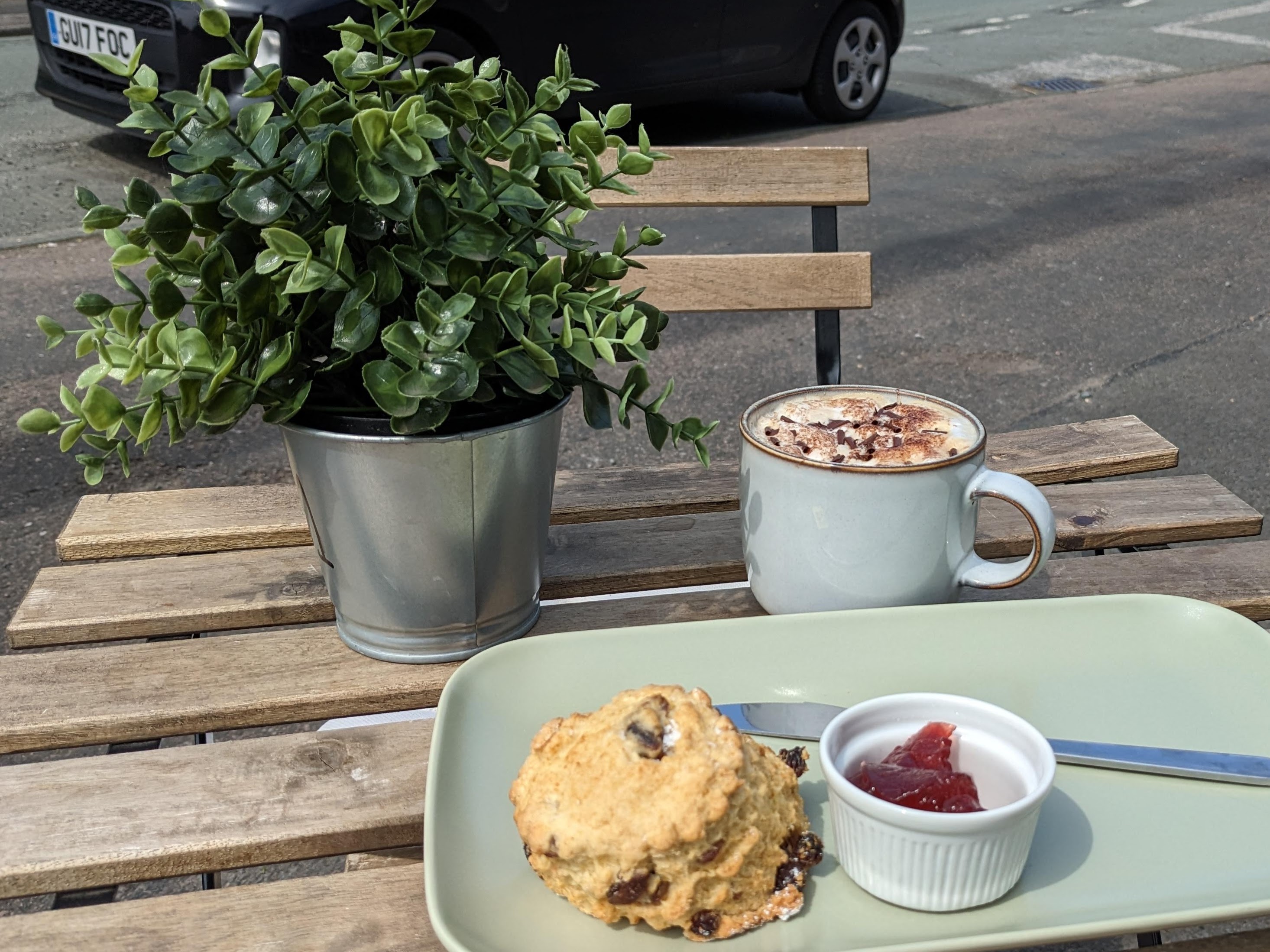 My coffee-and-scone stop was at Glazebrook at a café called The Greenery Coffee and Flowers. It was lovely sitting in the sun watching the world go by, but in view of the café’s name I was quite surprised to see artificial boxwood plants on the tables. They kept blowing away too, but that kept me amused replacing them.