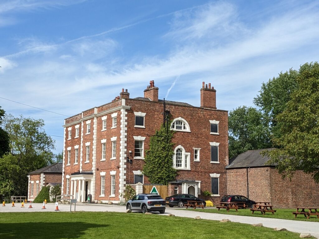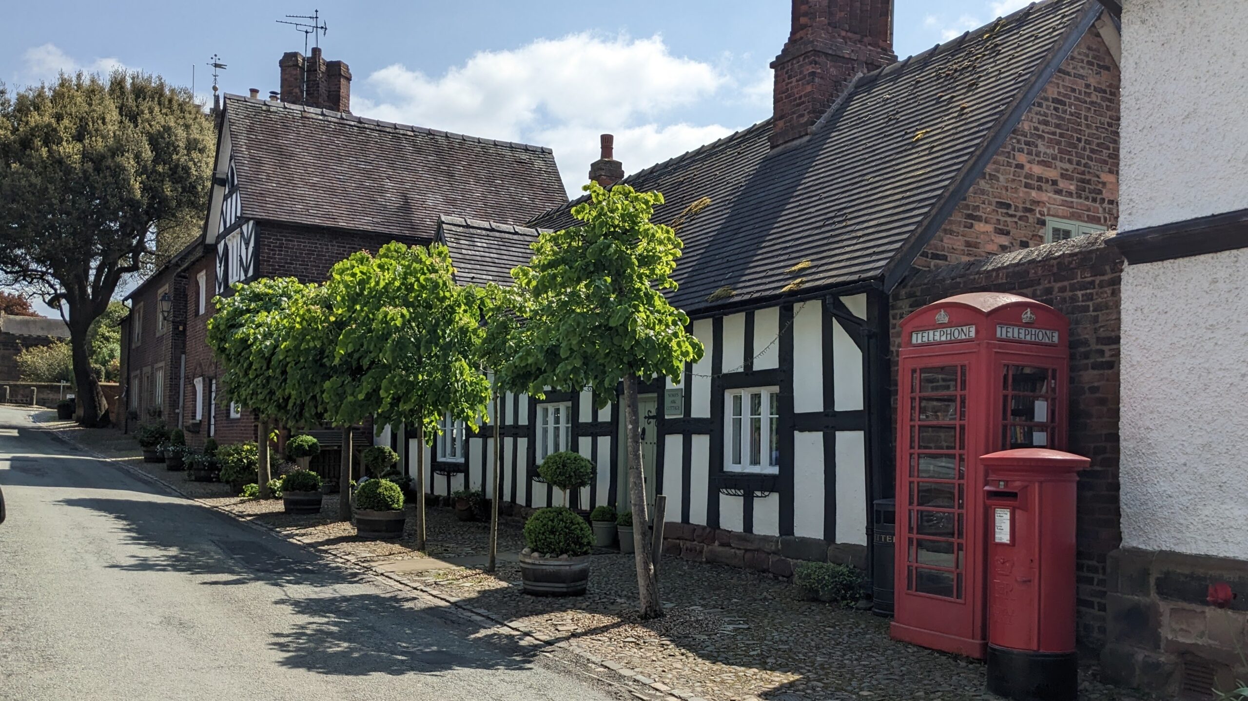 This morning it was an enjoyable but uneventful journey East and then North to cross the Manchester Ship Canal at Warburton near Lymm. The great thing about touring is that I randomly come across pretty villages that I have otherwise no cause to visit. Today, it was the village of Great Budworth which has everything you’d want in a village: a church, a pub, handsome houses and even a set of stocks for two people. It seemed to be short of a green, but perhaps I missed that.
