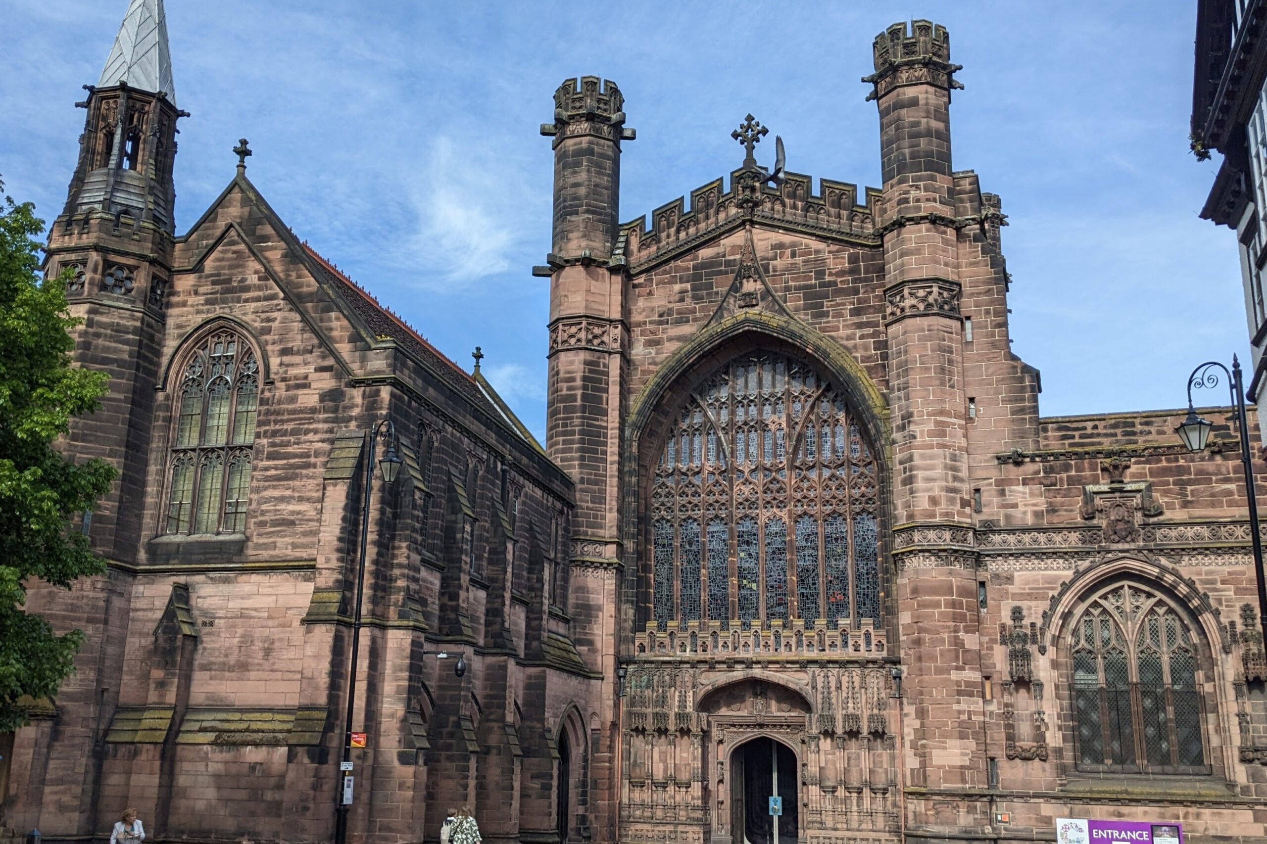 After checking in at the hostel (and availing myself of the special offer of a ‘brew and a cake’, I then dropped the bags off and nipped into Chester. It was only 25 minutes away along the splendid Millennium Greenway cycle route. It was full of commuters at that time of night which was great to see.
