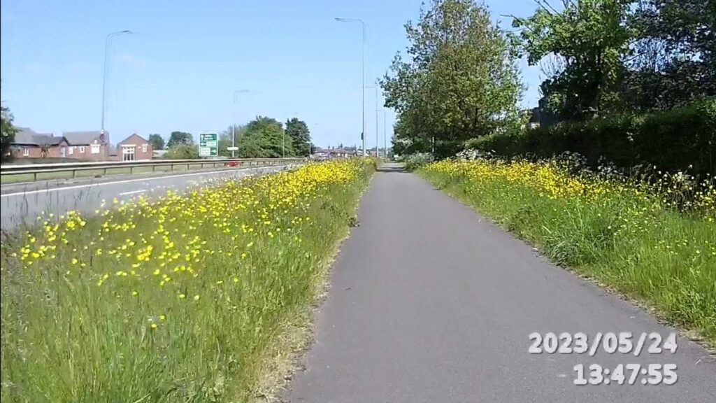 I also took advantage of the wonderful Liverpool Loop Line, part of the Trans Pennine Trail to miss out much of the suburbs. It wasn’t on the direct route, heading as it does NW/SE, but I didn’t mind the diversion. I even got to cycle beside the Aintree turf, albeit behind a large fence.